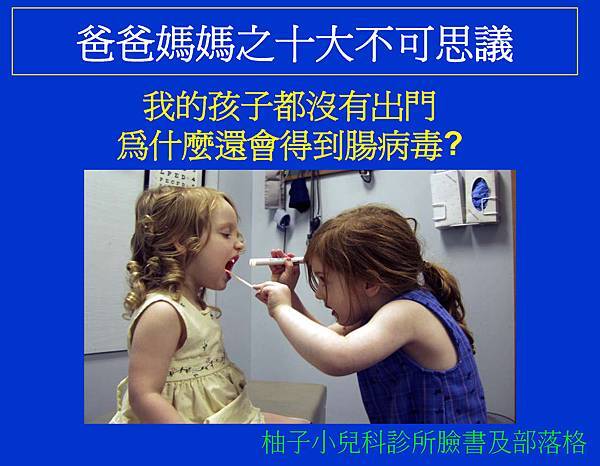 問題又來了,柚子醫師曾經遇過十分堅持的爸爸媽媽,堅持這個孩子完全沒有出門,就算是樓下的社區遊戲室也沒有去,為什麼還會得到腸病毒?