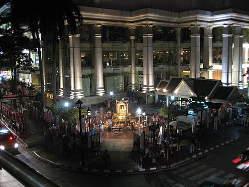 圖五:四面佛位在購物中心旁,夜晚依然香火鼎盛。