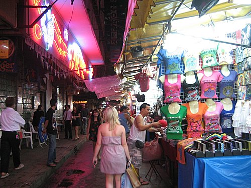 圖七:Patpong夜市單側,街道中央賣商品,兩旁店面多為紅燈區。